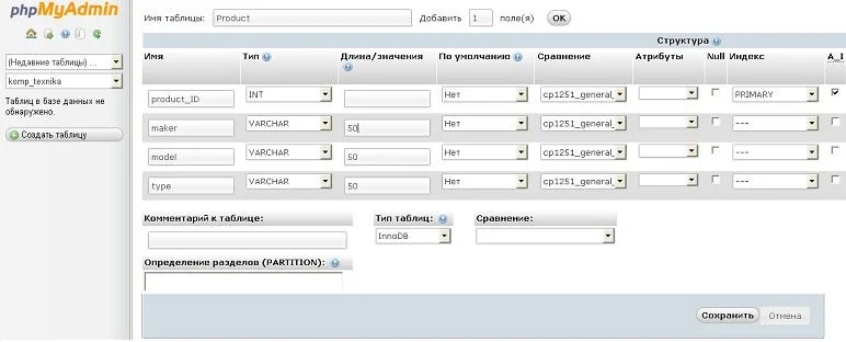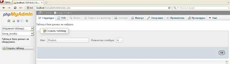 Например, мы создадим маленькую базу данных «Компьютерные технологии (komp_texn)» с одной таблицей «Продукт (product)».