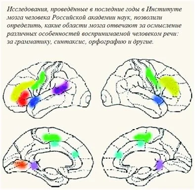 Посредством методов современной диагностики можно получить сведения о том — какие группы нейронов активируются при восприятии отдельных понятий. Например, при счете. Исследовано — какие группы нейронов (участки мозга) отвечают за речь. На самом деле уже существует огромное количество «карт мозга». Есть нейронное пространство (участок мозга) который активируется при восприятии лиц и при восприятии местоположения. Давайте приведем карту мозга, которая отвечает за речевое восприятие.