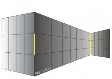 В процессе восприятия крайне важна перспектива, и здесь как раз в игру вступают наши априорные представления. На самом деле желтые линии одинакового размера. Но игра перспективы дает нам иллюзию, что правая линия больше. Но это не так. Даже зная это, я не могу себя убедить в том, что это так. И только измерив их длину, я могу убедиться в истинности этого.
